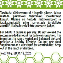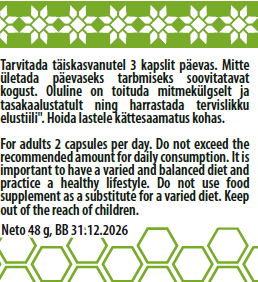 Tarvitada täiskasvanutel 3 kapslit päevas.