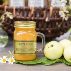Sisaldab ainult 100% puhast eesti mett. Ilus ja korduskasutatav sangaga keeratava kaanega klaaspurk.