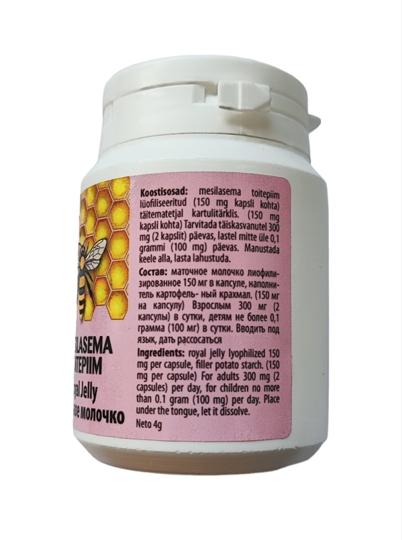 Koostisosad: mesilasema toitepiim lüofiliseeritud (150mg kapsli kohta) täitematerjal kartulitärklis (150mg kapsli kohta), kapsel (gelatiin) Pakendis on 30 kapslit.