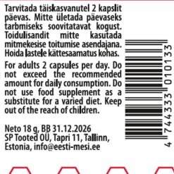 Toidulisand. Mitte ületada päevaseks tarbmiseks soovitatavat kogust. Toidulisandit mitte kasutada mitmekesise toitumise asendajana. Hoida lastele kättesaamatus kohas.